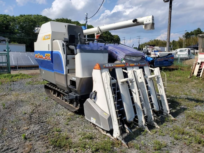 山武市の大規模稲作法人様よりイセキの5条刈りコンバイン『HF570』を買取査定。57馬力の大パワーは、広大な水田での収穫を一気に終わらせるためプロ農家様間の再販市場で非常に引き合いが強い商材です。こぎ胴の摩耗や各駆動ベルトの劣化状況を厳格に確認し、独自のBtoB再販ルートを活かした限界査定でお応えしました。